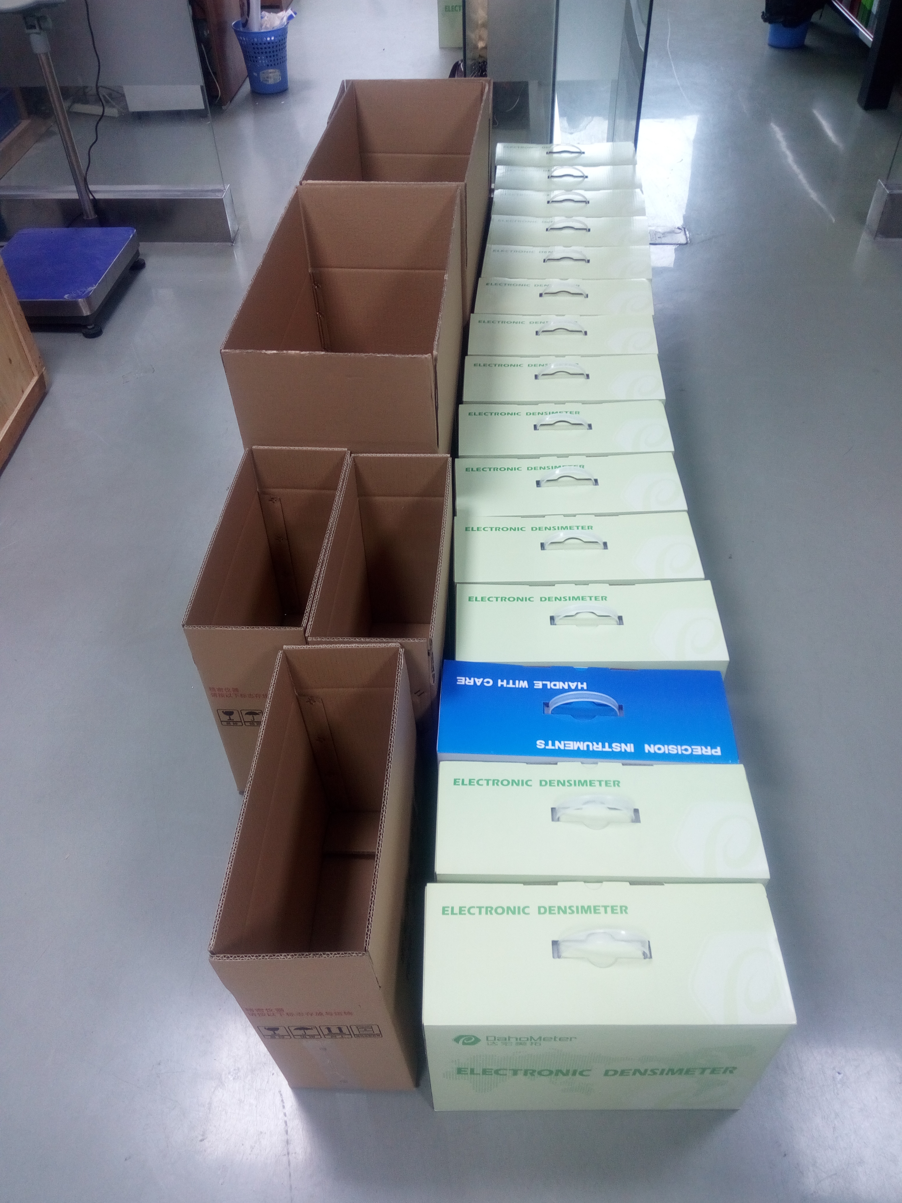 2018年11月,河南糧油檢測項目正式掛網(wǎng)招標,其中一項測試油類的液體密度計(數(shù)量32臺)為我司機型DH-300L,授權(quán)于河南經(jīng)銷商參與競標,中標后于2019年1月份正式出貨。因貨物較多,需分批出貨。