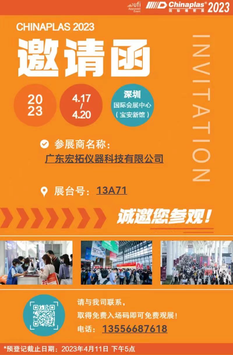 春天的約會,宏拓儀器誠邀您出席CHINAPLAS2023深圳國際橡塑展